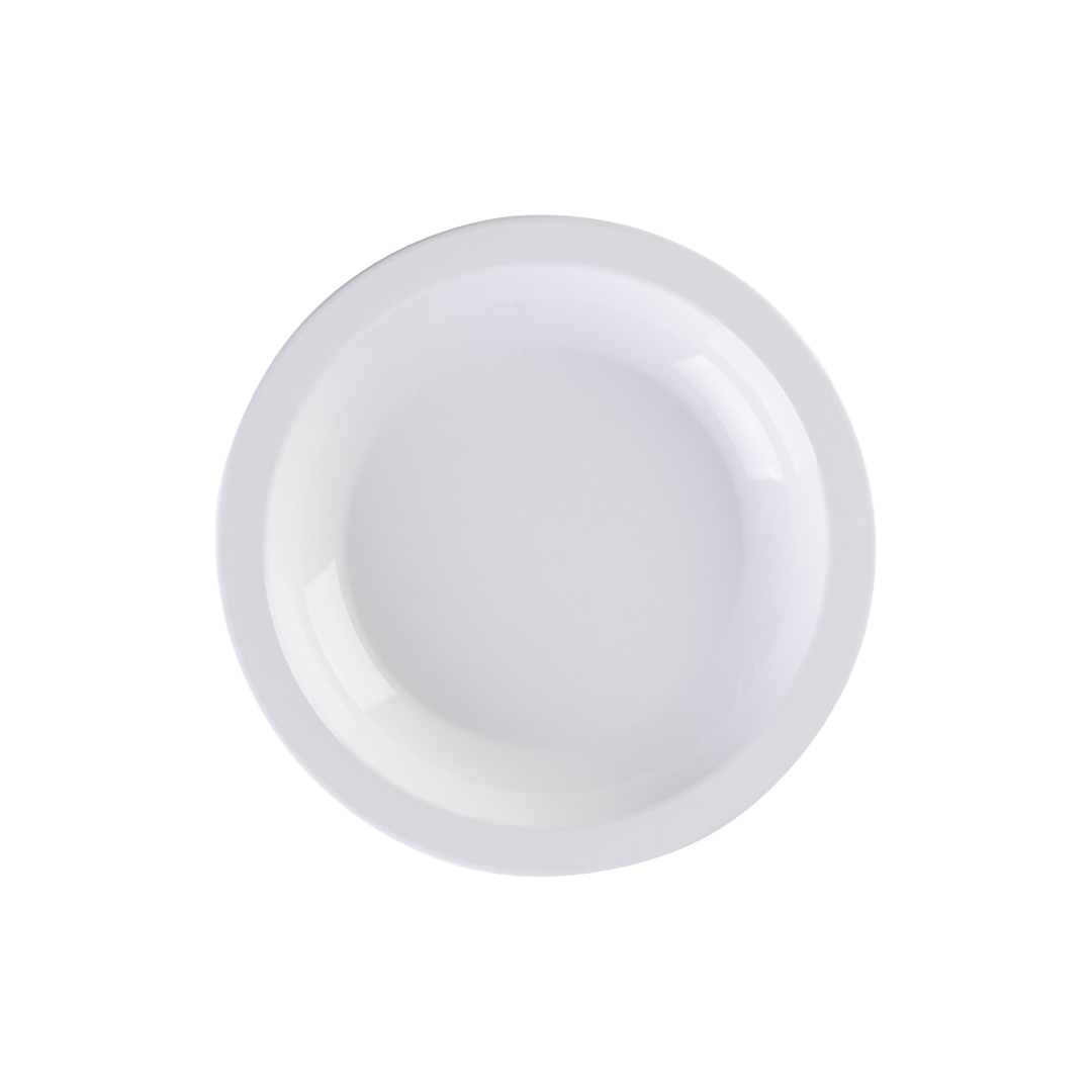 Seu formato raso é indicado para pratos principais, acompanhamentos e montagens completas, atendendo com eficiência buffets, restaurantes, hotéis, refeitórios e serviços de alimentação profissional, além do uso doméstico. Produzido em policarbonato de alta performance, o prato oferece elevada durabilidade, sendo indicado para operações de alto giro.